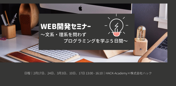 【2月17日(木)開始】WEB開発セミナー〜文系理系を問わずプログラミングを学ぶ5日間〜